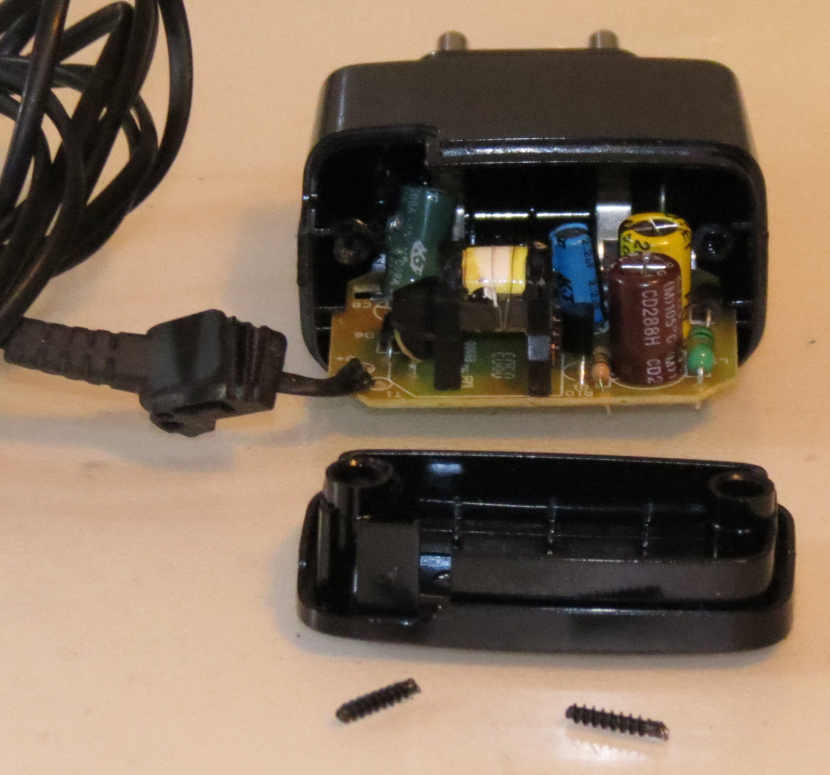 En este cargador me encontré con unos tornillos nada fáciles de aflojar, porque son de estrella triangular, y no tengo destornillador de ese tipo. Entonces, tuve que hacerles un taladro en la cabeza con una broca de 3 mm, y después terminé de sacarlos con unos alicates.