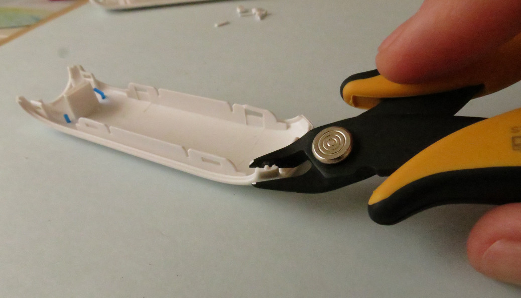 Después, también habrá que cortar las tapas laterales para que no choquen con la batería.