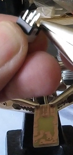 Conviene estañar las pistas que sirven de conector USB, para que no entre demasiado holgado en el USB hembra.