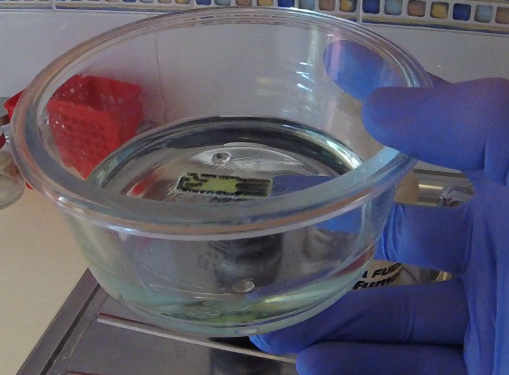 Es recomendable utilizar un recipiente de vidrio para esta fase de atacado.