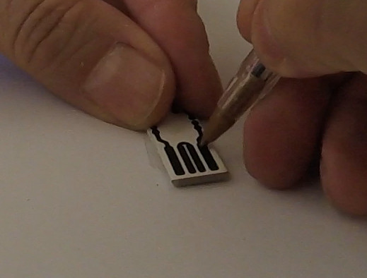 Una vez marcadas las pistas con el rotulador, se repasan los pequeños defectos que hayan podido quedar con un alfiler o algo similar.